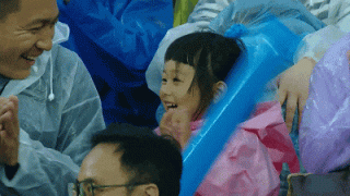 打着雨伞、披着雨衣奴隶爸妈来看球